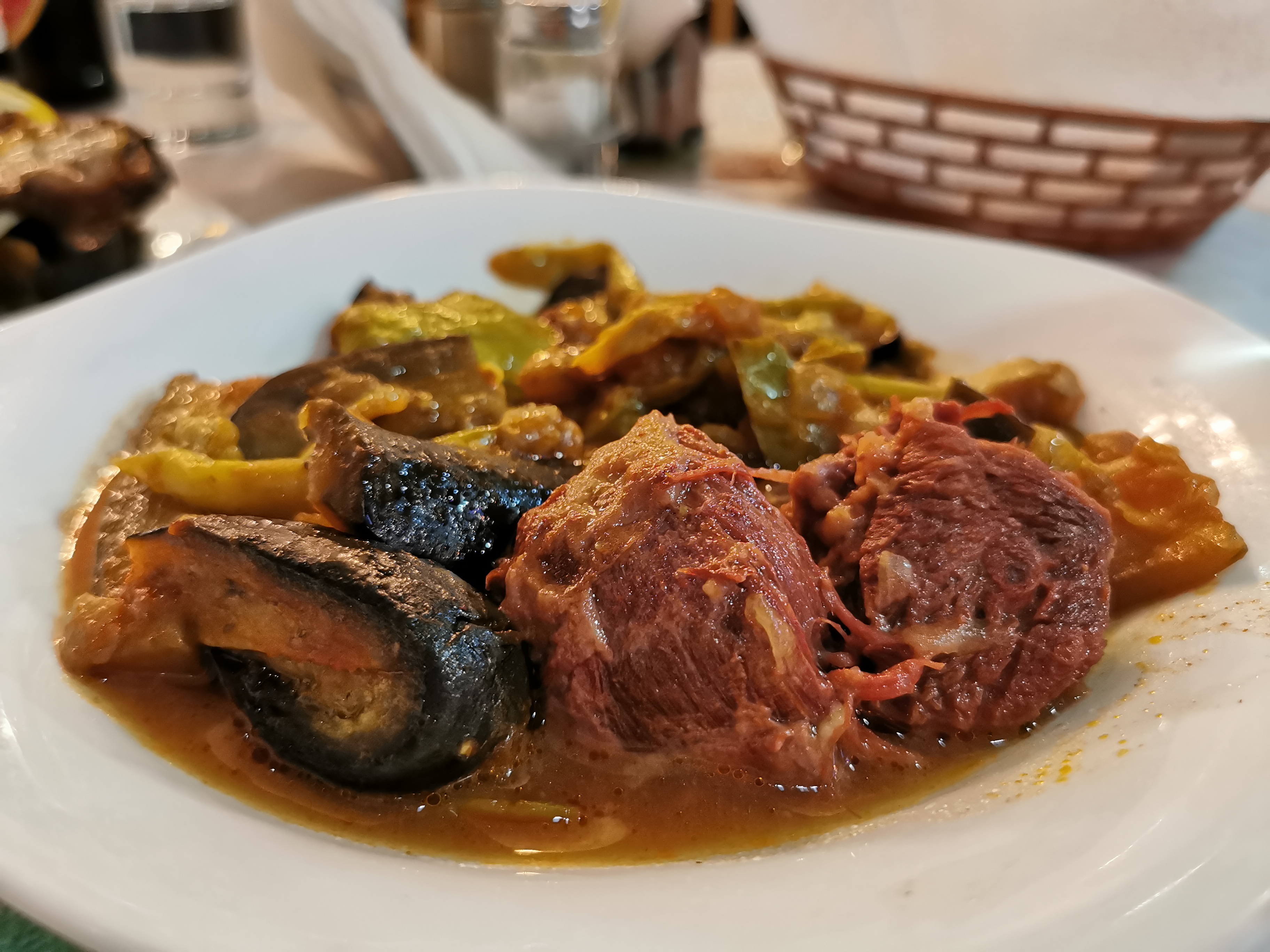 Tagasi Sarandësse jõudes käisime veel rannas (ikkagi viimane päev siin Rivieras) ja õhtusöögiks valisime traditsioonilise Albaania bistroo. Meile sel õhtul see lihtne talupojatoit just muljet ei avaldanud, aga kõht ka otseselt tühjaks ei jäänud. Aga kooki ja kommi läksime ikka ostma.
